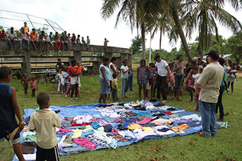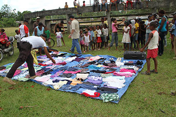 The Clothing drive is a distribution of clothes that takes place once a year. This day is dedicated to the younger population. Each recipient has the opportunity to pick clothing to their liking. The Clothing Drive is a way to enhance the self esteem of the children and allows them to take pride in their appearance. Everyone leaves very happy with their selections.